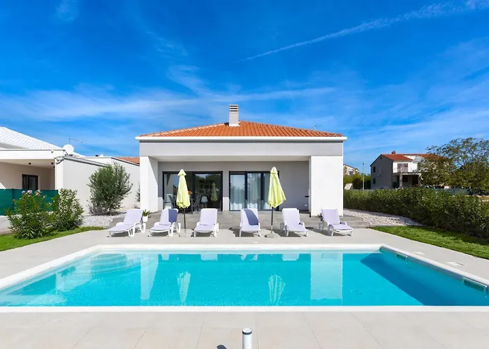 The property includes a dining area with a microwave oven, an electric kettle, and a refrigerator. Pula airport is reachable within a 15-minute drive from the property. The villa has a sunny patio to relax on after a busy day, along with a swimming pool.